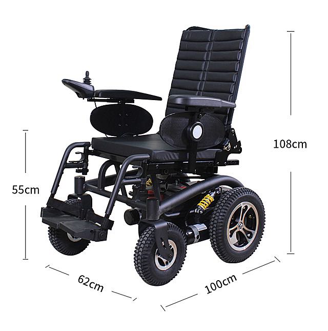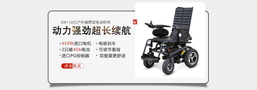 (2)、斯維馳SW1102C越野型電動輪椅,這款電動輪椅超長續航,動力強大,電動輪椅中的悍馬。英國PG控制器,450W臺灣進口電機,四輪充氣粗紋抓地輪胎,適用各種復雜多變的路況。